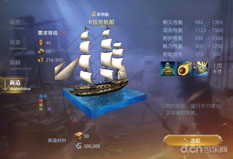 大航海之路船只图鉴之军用舰卡拉克帆船介绍。