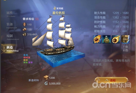 大航海之路船只图鉴之军用舰盖伦帆船,一起来看看吧!