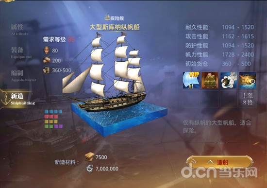 大航海之路船只图鉴之探险舰 大型斯库纳纵帆船