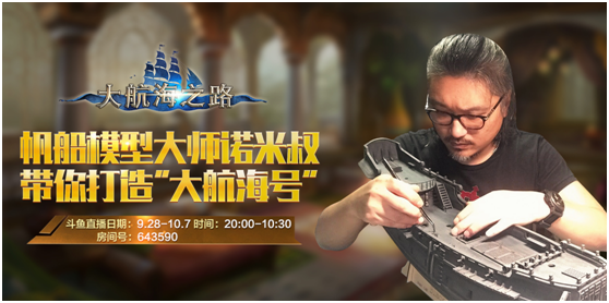 作为国庆期间献给所有航海迷的专属福利, 9月28日—10月7日国庆期间,《大航海之路》将首度联动斗鱼第一船模制作大师——“诺米叔”,在知名直播互动平台斗鱼,每天为航海迷带来定制船模直播互动!更有海量《大航海之路》安卓礼包码等你来拿!