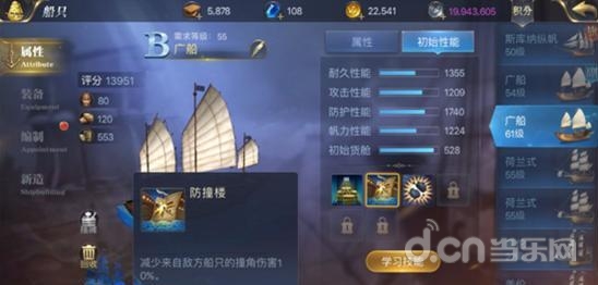 主要提升船只的航行速度,在船只的左下角框图中,如果蓝色的小正方形越多,证明该船只的航行速度成长越高。如果你对船速有特别的要求,不妨多关注一下这类属性。