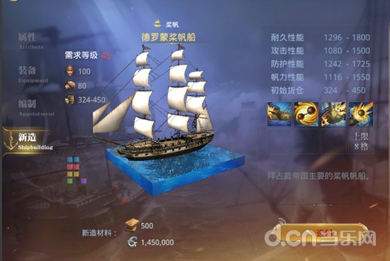 大航海之路船只图鉴之桨帆德罗蒙桨帆船,一起来看看吧!