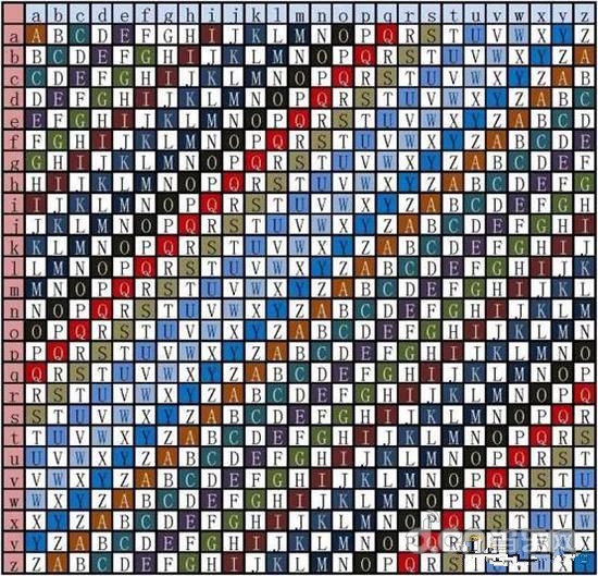 与那些显而易见的提示不同,这其实是一段等待破译的维吉尼亚密码。维吉尼亚密码由十六世纪法国亨利三世王朝的不来塞维吉尼亚发明,是在单一的凯撒密码的基础上扩展出来的多表密码。维吉尼亚密码的特点是将26个凯撒密码表合成了一个表,同时引入了“秘钥”概念。