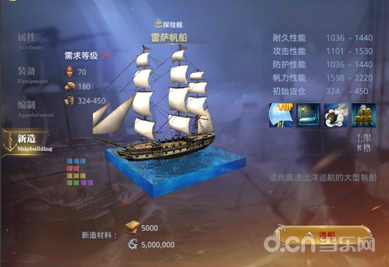 大航海之路船只图鉴之探险舰雷萨帆船,一起来看看吧!