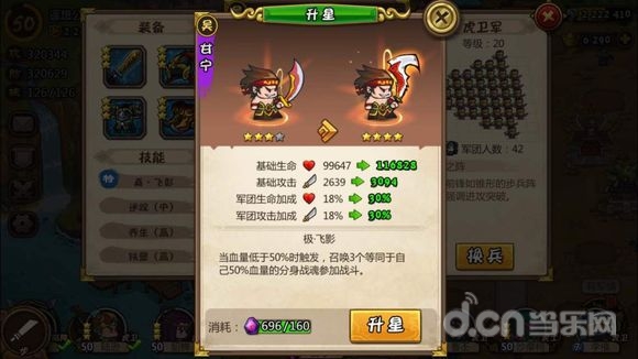 张郃,6,没用过,在前期对面没骑陷,像魏延这种高防的武将可以登场,减防的debuff还是可以很好地针对,伤害也是可以,但不建议升星,因为后期没他位置。
