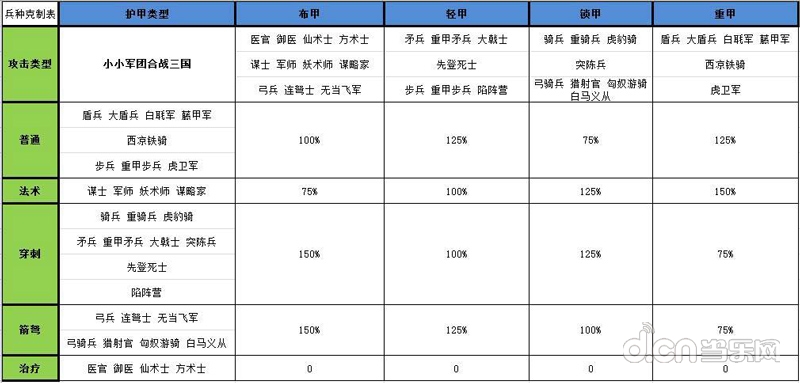 举个例子:虎豹骑(穿刺)对阵布甲职业时可以造成150%伤害,而对阵重甲只能输出75%的伤害,因此在布阵是我们要尽量避免虎豹骑与重甲职业直接对抗,并且选择最易输出到布甲职业的位置。