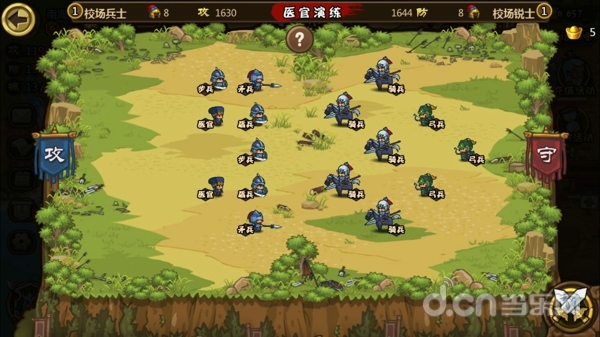 步兵、盾兵顶住骑兵还是很容易的,再加上医官,阵容上就克制了,也可以将矛兵后置,绕后击杀弓兵。