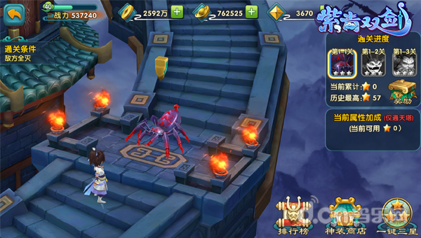《紫青双剑》中装备的主要获得途径之一,就是通天塔,通天塔可以获得大量的器魂,可以在神装商店中兑换装备碎片以及精炼石等。每一层都有强力的守关怪物和通关条件,大家烧脑配置不同的布阵,就更容易冲上更高层哦~