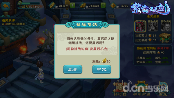 在挑战失败后,可以拥有一次复活的机会,继续进行挑战,若对自己的战果不满意,那就再来一次吧~