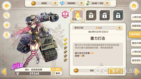 光学瞄准 提升虎H的命中率,重力打击有机率造成眩晕效果。