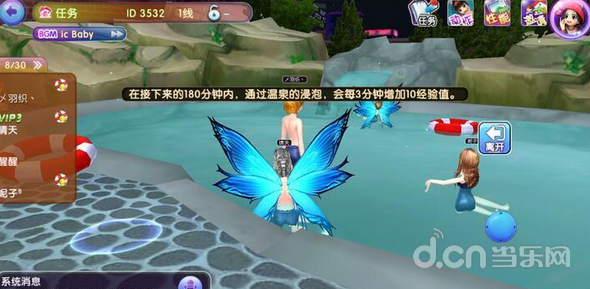 ④ 温泉广场。每天都可以去温泉广场泡3个小时温泉,每3分钟获得10点经验值。