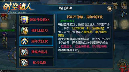 时间有限,精彩无限,和《时空猎人》一起共享周年盛典,以最少的付出得到最丰厚的收获,别人都在玩,你还等什么?