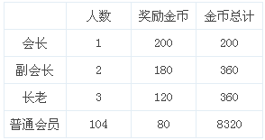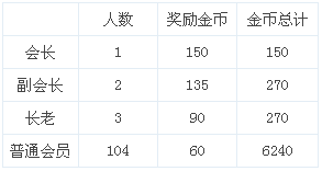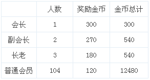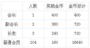 公会金币奖励: