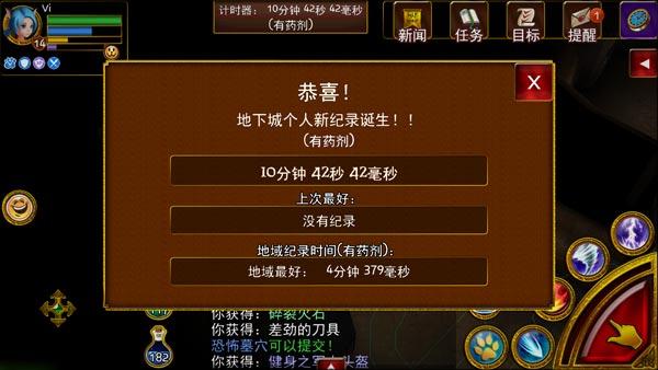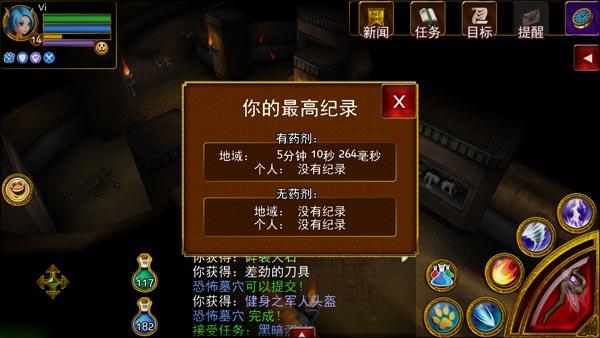 正式进入墓穴底层后,会显示当前墓穴有药剂加成和无药剂加成两种模式的最佳纪录与个人纪录。当玩家进入墓穴时系统便会判断是否携带药剂BUFF,发动第一次攻击则开始计时。