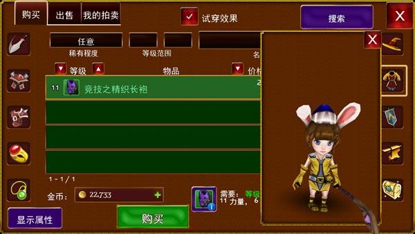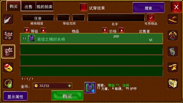 点击选中物品,可查看物品详细属性,然后选择购买。