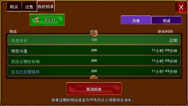在“我的拍卖”中,玩家可查看自己正在拍卖行中出售或者已买成售卖的物品,点击物品可取消该物品的拍卖。