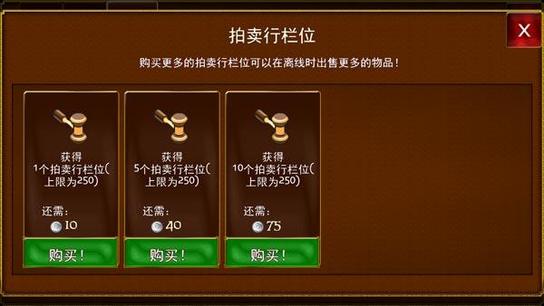 当玩家有较多物品需要在拍卖行交易时,点击“我的拍卖”下方的拍卖栏位按钮,可选择用铂金币增加更多的拍卖栏位。