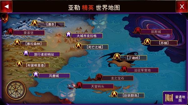 当玩家等级到达40级后,便可进入亚勒大陆的精英地图。在功能界面中点击“世界地图”,点击右下角便可切换至精英地图。无论是否有打通野外地图的普通版,精英地图都一样可开启。