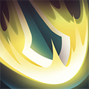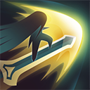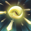 对自身范围内敌人造成挥砍伤害和元系伤害。伤害不稳定。离自身越近伤害越高(吃到剑气越多)。同时物理英雄不会加成法系伤害,所以元系的剑气相对伤害稳定。