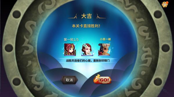 如果抽中了“大吉”,可直接获得丰富奖励、躺赢到下一关;如果是“中吉”,上阵英雄均可恢复一定血量;但如果脸比较黑,抽中了“大凶”,玩家则需要额外打一轮PVP对战才算过关。