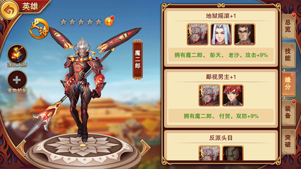 在狠西游手游中,每一个英雄都有自己的定位,辅助、攻击或者是防御,物理输出、法术输出或是混合输出带来不同的选择和乐趣,阵容搭配的好,不管是推图还是打竞技都非常给力。