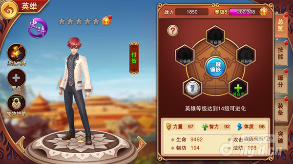 4. 镶嵌满活子后,英雄等级到达一定等级就可以进化到下一个品质。