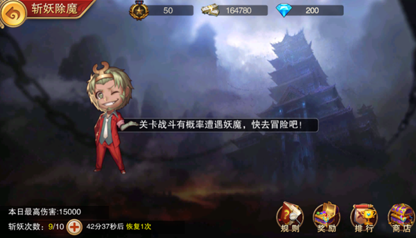 1、在挑战普通或者精英的关卡过程中,有几率遇到妖怪从而触发“斩妖除魔”任务。