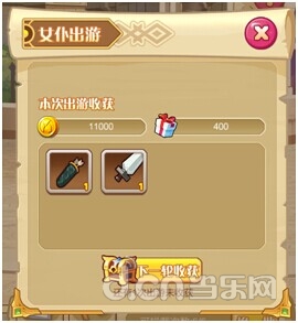 3.女仆出游:女仆等级越高,每次出游获得的奖励越高。