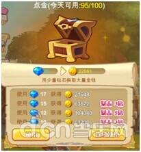 5.点金:使用充值获得的钻石换取金币。