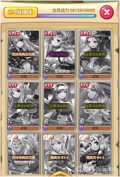 再来看游戏中必不可少的陪你冲锋陷阵的英雄们,《圣剑守护》的英雄也采用了当今最流行的评级系统,由N--SSSR构成。打开界面一看,狂拽酷炫吊炸天的SSSR英雄清一色的小姐姐。