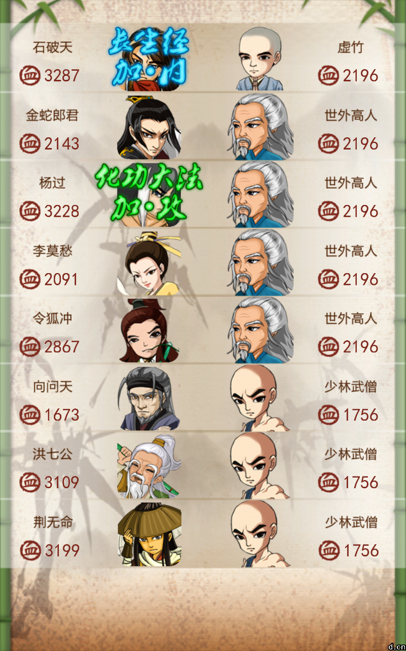 主力弟子:令狐冲、杨过、洪七公、石破天和荆无命,其他都是酱油位!