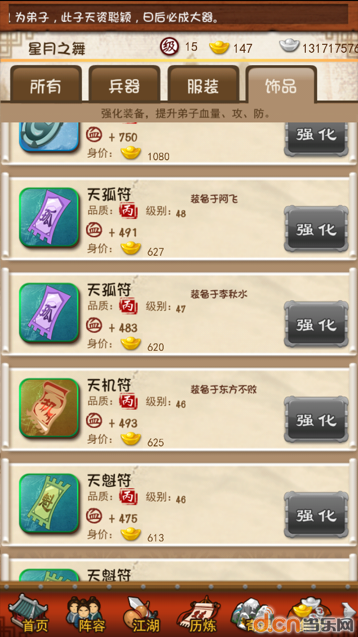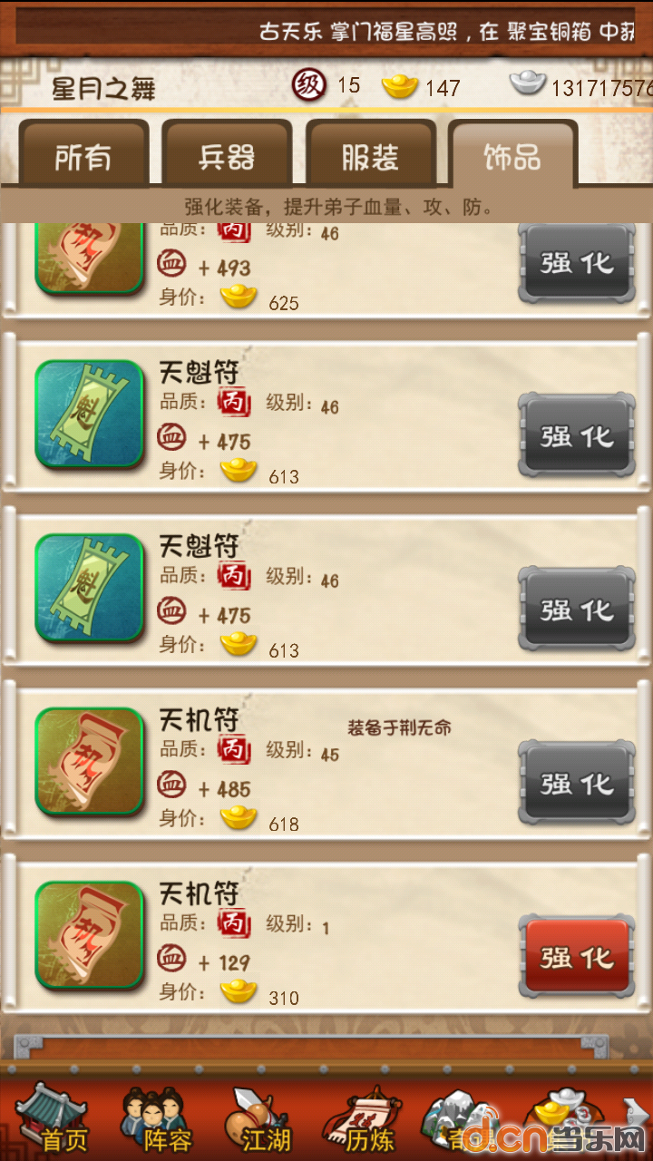 传说中的每天拜之前弟子全部换上甲级武功,这个说法经我的长期实践是错误的,即使每天都这样参拜,该给武功的还是会给武功,并不会因为你身上带的全是甲武功而换成给你饰品。