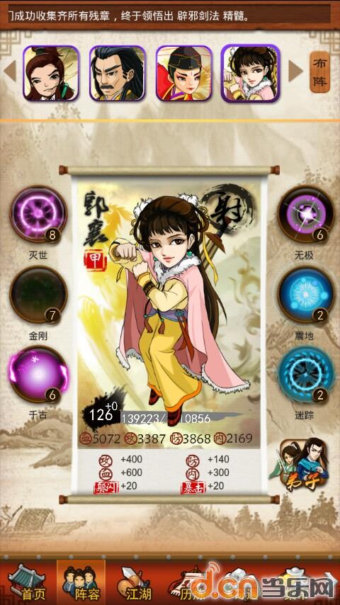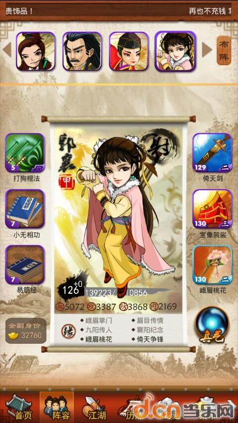 28号入手郭襄妹子。2000多点培养丹砸进去,基本攻防、少量血、无内(好像点错一个减攻加内的),现在剩700点潜力。属性分析:
