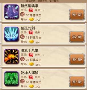 弟子在50级的时候只有一个真气格,之后每15级增加一个新的真气格。而令人兴奋的是,各位掌门还能够通过炼化其他真气获得真气值将某一真气的等级提升,提升等级后的真气附加的属性值将变得更高!