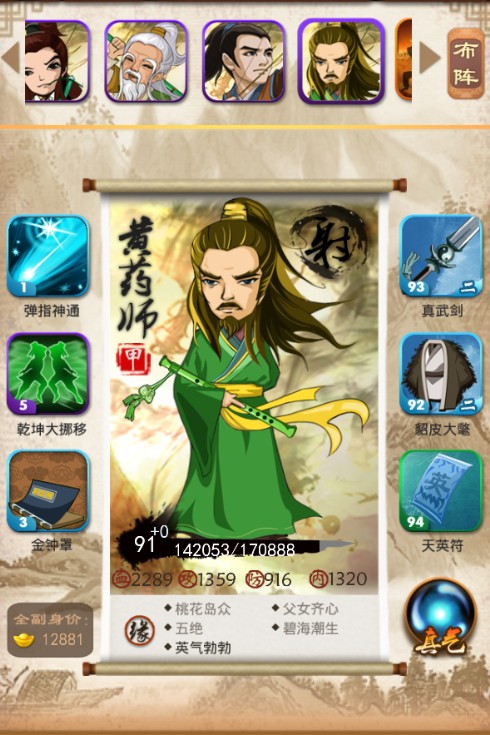 游戏中黄药师简介:自创数门奇功,武功奇高,通晓天文地理、琴棋书画、奇门遁甲各类知识,堪称百科大全。