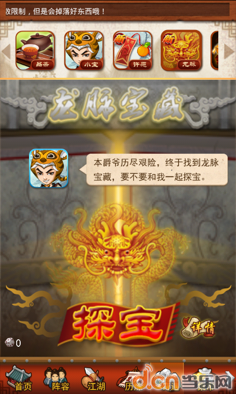 和小宝猜拳一起开始的,龙脉每天赠送2次摇点机会,里面掉落银两,元宝,精炼材料,闭关卷轴,武功,许愿宝牒。大家平常在别的地方如果花了元宝的时候,龙脉摇到元宝概率会大很多,算是补偿吧。