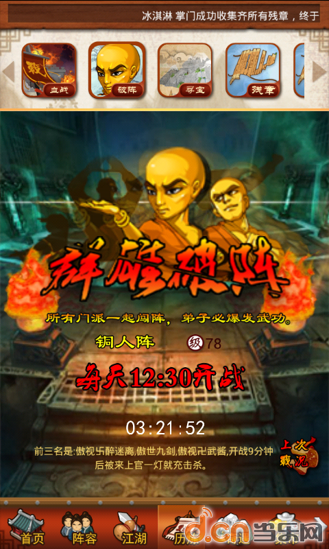 11级开启,分5人阵,6人阵,7人阵,8人阵,每天进榜有元宝。