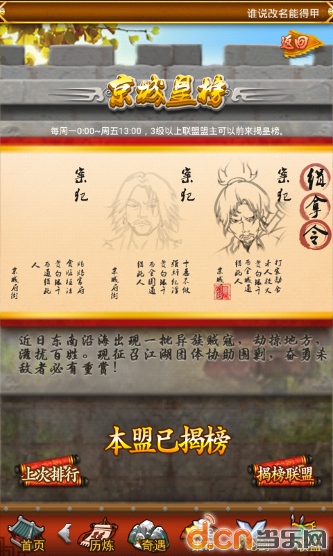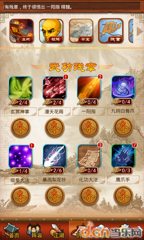 开始就有了,残章不建议卡血战的人打,浪费威望,升级的不用考虑。有时候活动江湖会掉落甲残章,好活动,遇到的时候就可以把吃鸡的积累一次交代进去了。不过要想出甲残章就得花元宝。