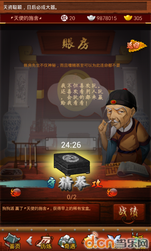 2:猜拳每天九点开始,每局猜拳结束有半小时冷却时间,这个全凭个人手气。