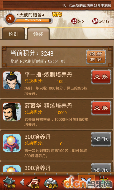 5级开启,根据排名每分钟给积分,积分可以换培养丹。这个看个人实力吧......
