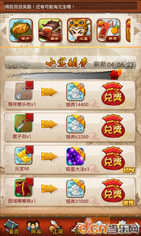 建议大家每天尽量用元宝刷,2元宝一次还是划算的。