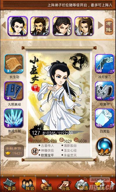 亲爱的掌门沐沐又来了,今天给大家带来的侠客盘点是一位冷艳高贵、清新脱俗的绝色美女,想必机智的掌门已经猜到了,没错就是《神雕侠侣》中的第一美女“小龙女”。在《大掌门》中小龙女的综合实力能进甲十,江湖豪杰无不以拥有此“美少女弟子”为荣,关于小龙女弟子的获得和培养有兴趣的掌门一起来研究研究吧!