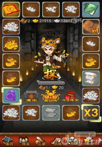 其中6号方格是一张羊皮纸并可获得一次免费探宝机会,11号方格是x3,如果玩家获得这个奖励则下一次获得的奖励将翻3倍,比如下次获得50元宝,则玩家获得的实际奖励是150元宝。