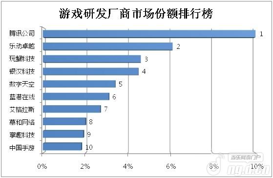根据速途研究院发布的2014年2月手游市场分析报告显示,国内游戏研发商市场份额比例玩蟹科技位于全国第三,仅次于腾讯游戏和乐动卓越,位居国内一流手游研发商前列,旗下明星手游《大掌门》爆红ios和android平台,在收入和用户数上均表现不俗。