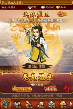 决战结束后每日可在活动页面进行参拜武林盟主,26级以上掌门获得掌门威望、银两、元宝奖励,26级以下可获得银两奖励。