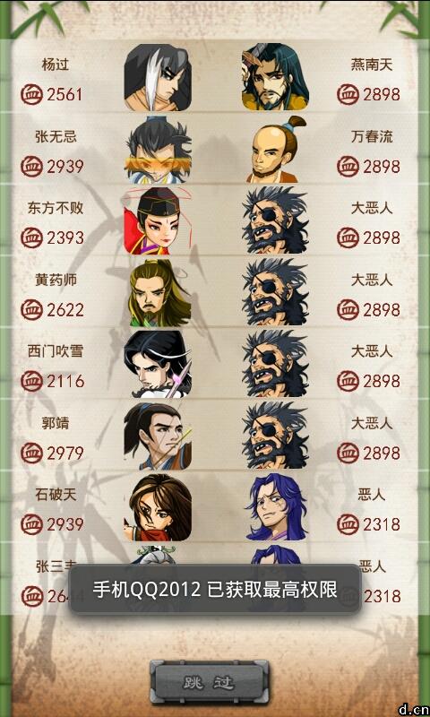 关于1,3号人选,新版增强了缘分与被动武功的作用,东方不败,西门吹雪,邀月等弟子稍加培养攻防,在门派等级31,32后达到上面属性不难。而高内弟子如张三丰等人,装上九阳神功和5级天山,不用培养也可上阵。防御型弟子也可改变需求,增加防御降低攻击。