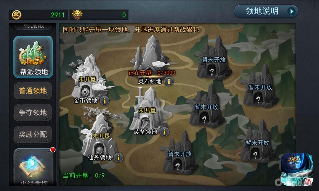 帮派领地同时只能开垦一块领地,开垦进度通过帮战累积