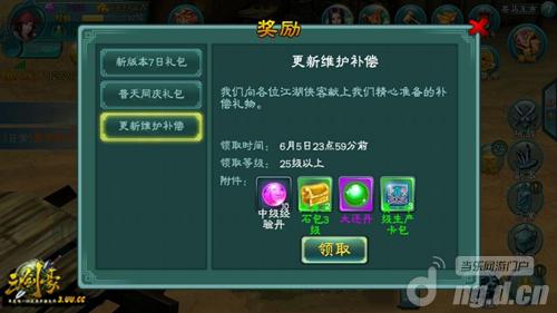 《三剑豪》的礼包福利一直都受众多玩家的好评,此次新版“武林盟主”降临怎能少了这些超级礼包呢?连续七日放送的“新版本7日礼包”,庆贺新版上线的“普天同庆礼包”,抚慰众位玩家弱小心灵的“更新维护补偿”,内含海量铜币、高级经验丹、生产卡包、高级玉石包、更有兑换60紫装的玄晶……等众多福利,玩家只需登陆《三剑豪》即可通过邮件的形式领取,千万别错过哦!