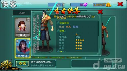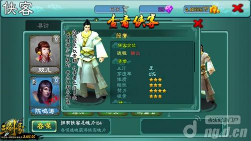 从不删档内测开始连续三天签到便可以自动获得三星侠客段誉,想必这位出自《天龙八部》的痴情男儿众位小伙伴都不会陌生,这位为了心中中意女子做任何事的痴情男儿在《三剑豪》中也是痴情难改,在打斗副本中一口一个“要是能一辈子这样看着王姑娘,哎!”“这一声叹息如此好听,这世上怎能有这样的人物”心心念念的只有那位王姑娘,不过虽然痴情但是战斗力还是很可观的,所以也是玩家早期的好帮手。