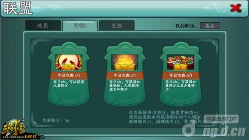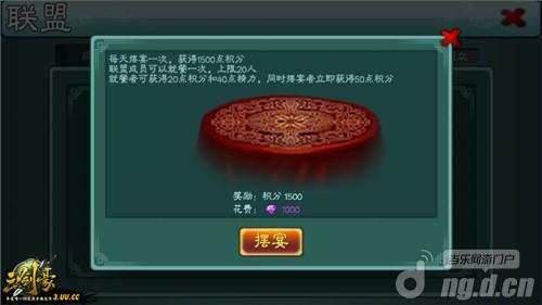 联盟系统共有“敲鼓”、“聚宝盆”、“盛宴”三大活动给玩家提供丰厚的福利。“敲鼓”功能,每日每位玩家有一次敲鼓机会,可获得大量的联盟积分。而“聚宝盆”则为各位玩家提供大量铜币,为大侠们行走江湖解后顾之忧,每日一次免费开启机会,共有三个聚宝盆供玩家选择开启。除了能获得大量铜板之外,只要你人品爆棚甚至有几率能开出元宝和精力哦!